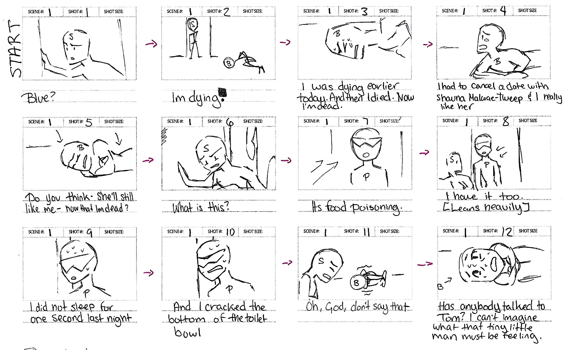 For this project, I chose to adapt a scene from Parks and Recreation Season 5, Episode 12, and translate it into a 60–90 second animatic to showcase my skills in storyboarding, composition, and timing. Using original sketches, I planned and structured key visual beats to ensure narrative clarity and emotional impact. Emphasis was placed on communicating movement and pacing through framing, shot variation, and scene transitions, without the need for finalized animation. The final animatic highlights my ability to develop a coherent visual story from script to screen.
