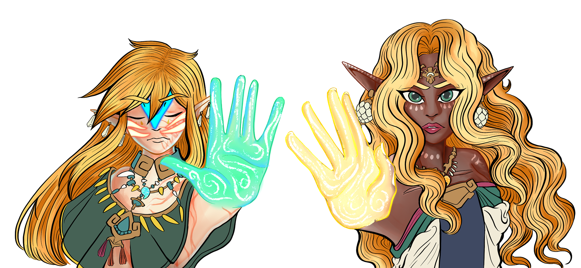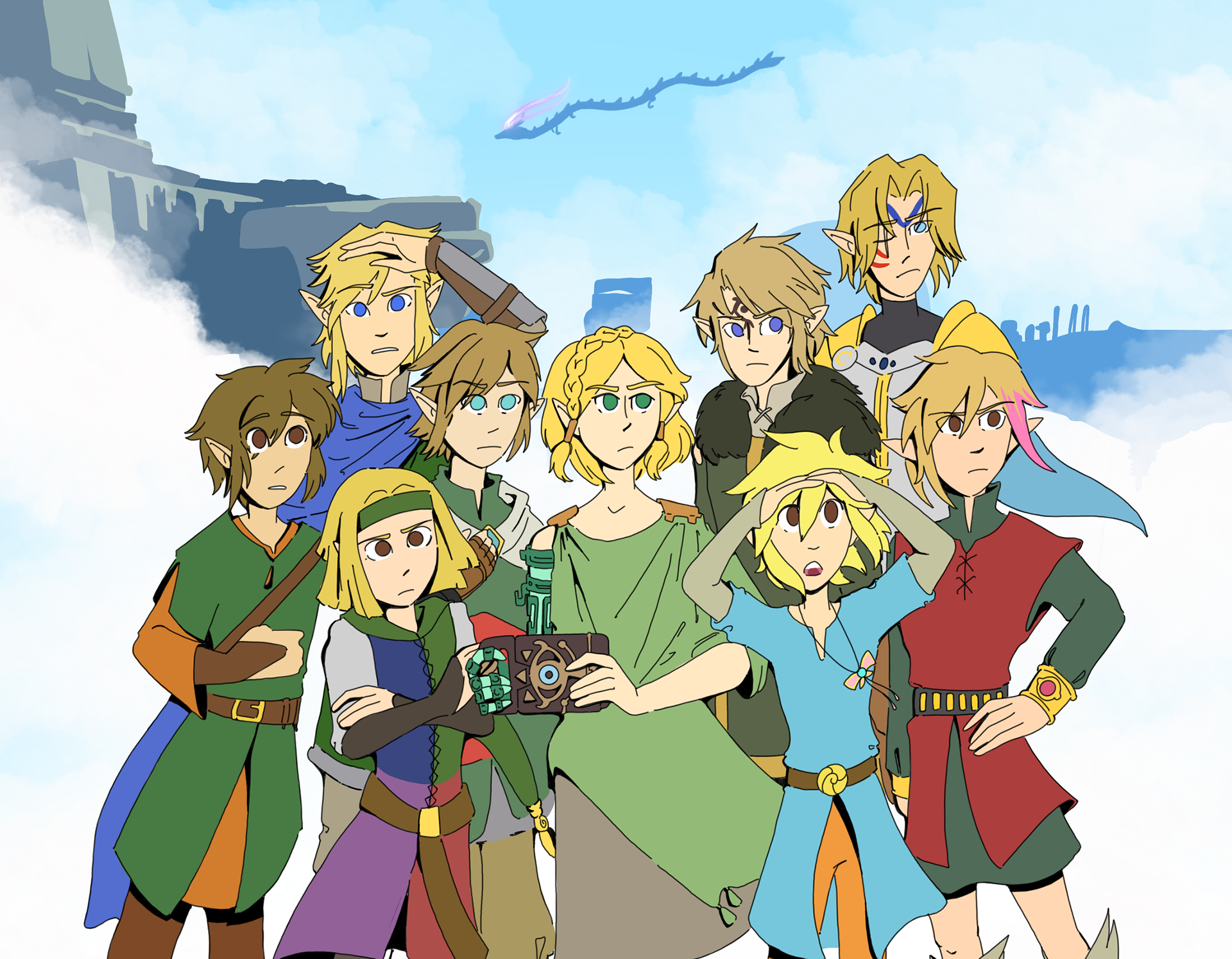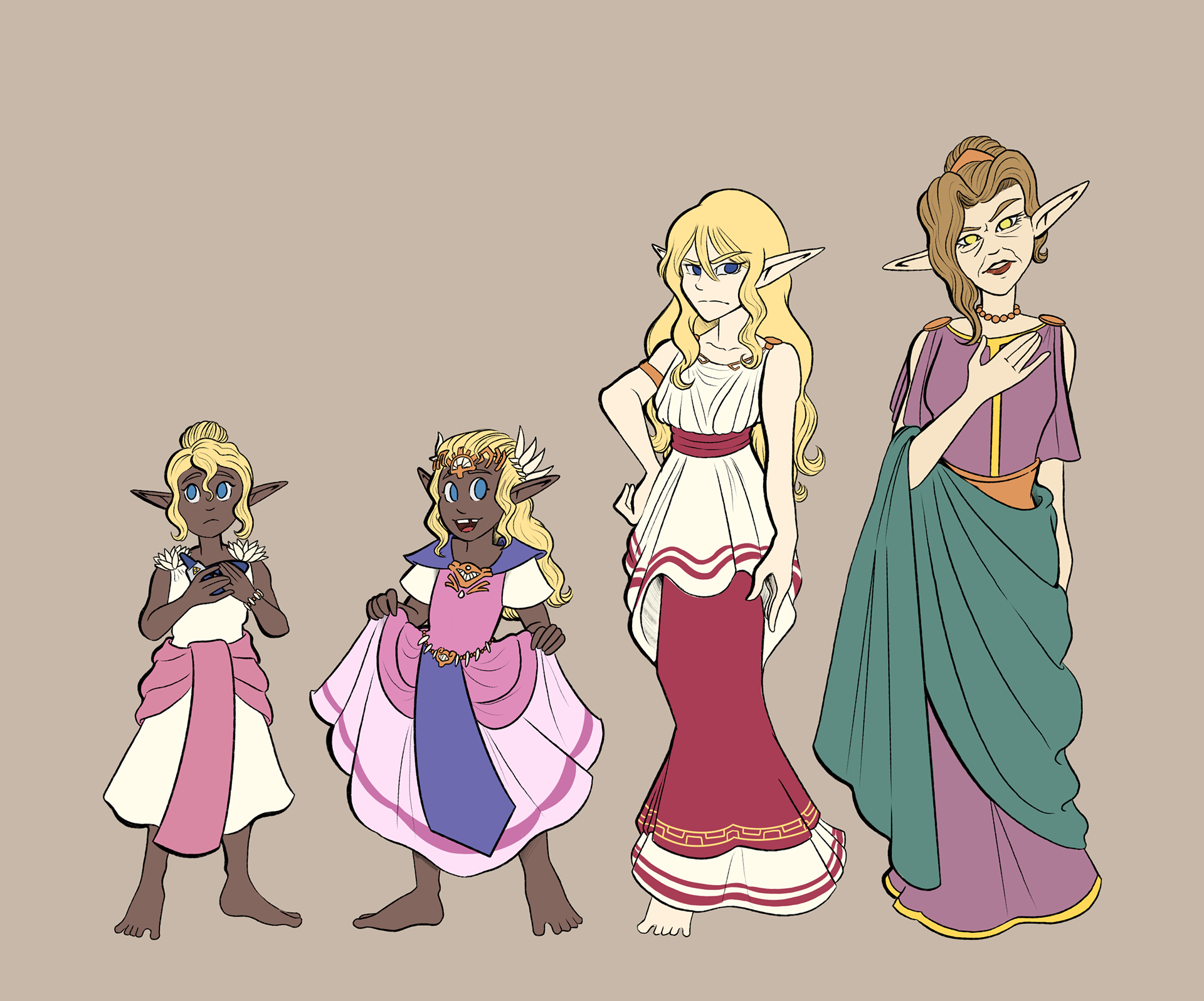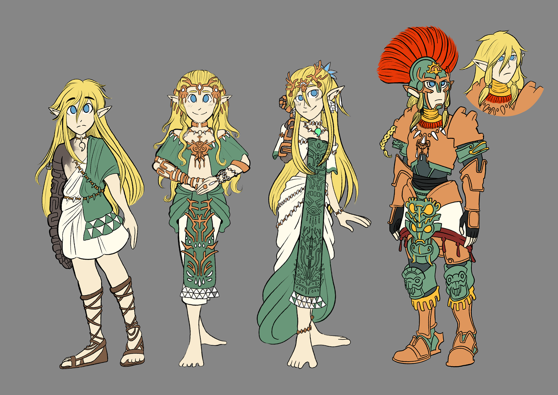 Left to Right: Princess Zelda (Common & Royal Wear), Aria Skyloft, Aylanna Skyloft